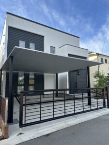 外構には 高級感あるカーポートを設置。アメリカン以外のデザインも是非ご見学ください。