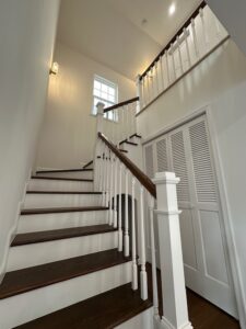 Livingの中央に 吹抜けの輸入階段を設置しています。